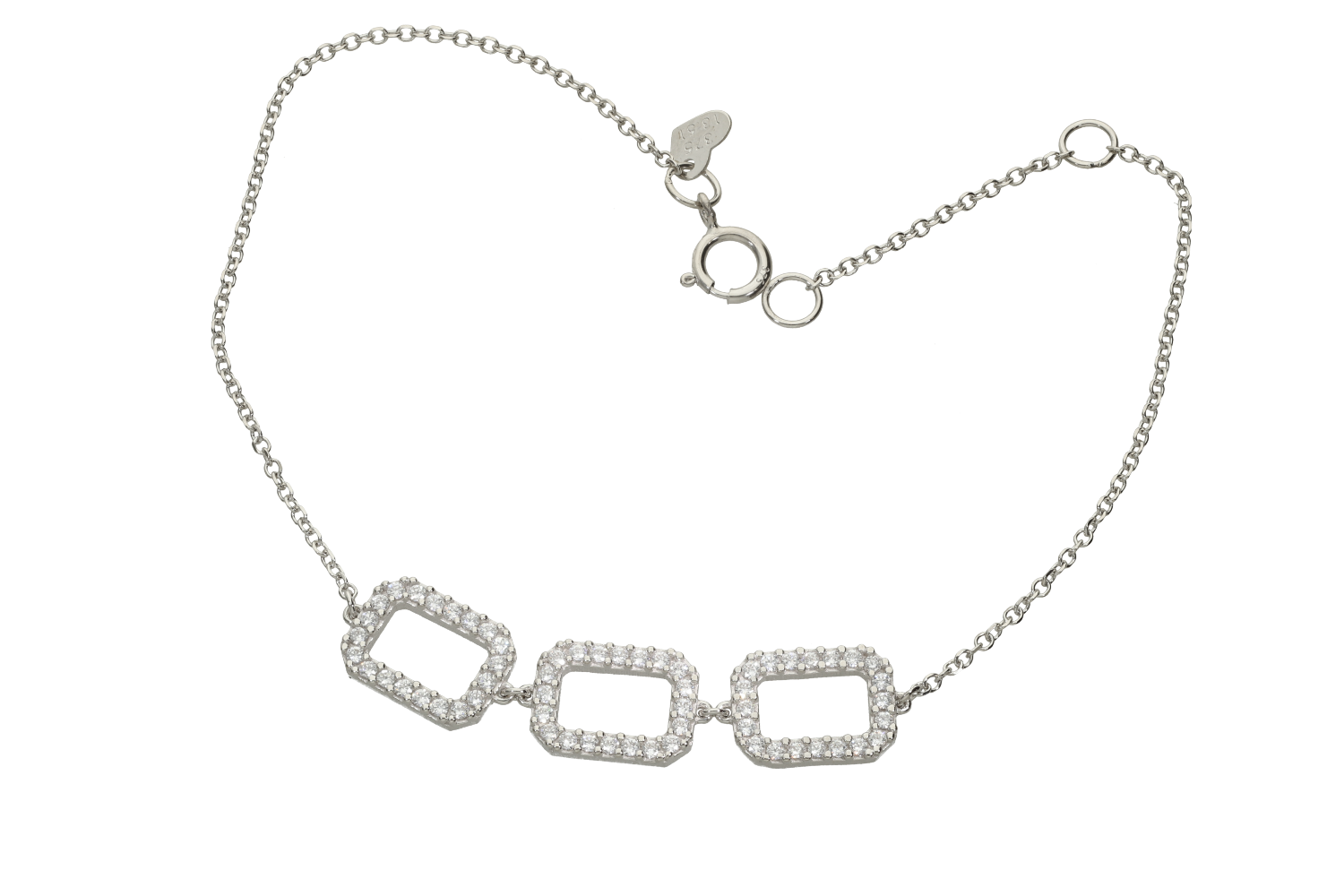 Βραχιόλι σε λευκόχρυσο 9Κ με τρεία ορθογώνια μοτιφ με ζιργκόν