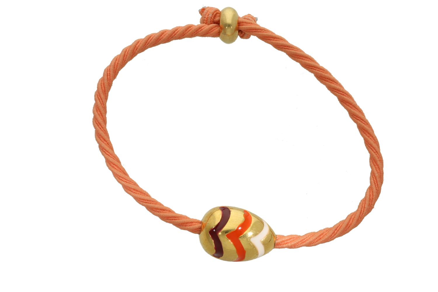 Βραχιόλι σε ορείχαλκο με αυγό με 3 ρίγες χρωματιστές και κορδόνι με μακραμέ