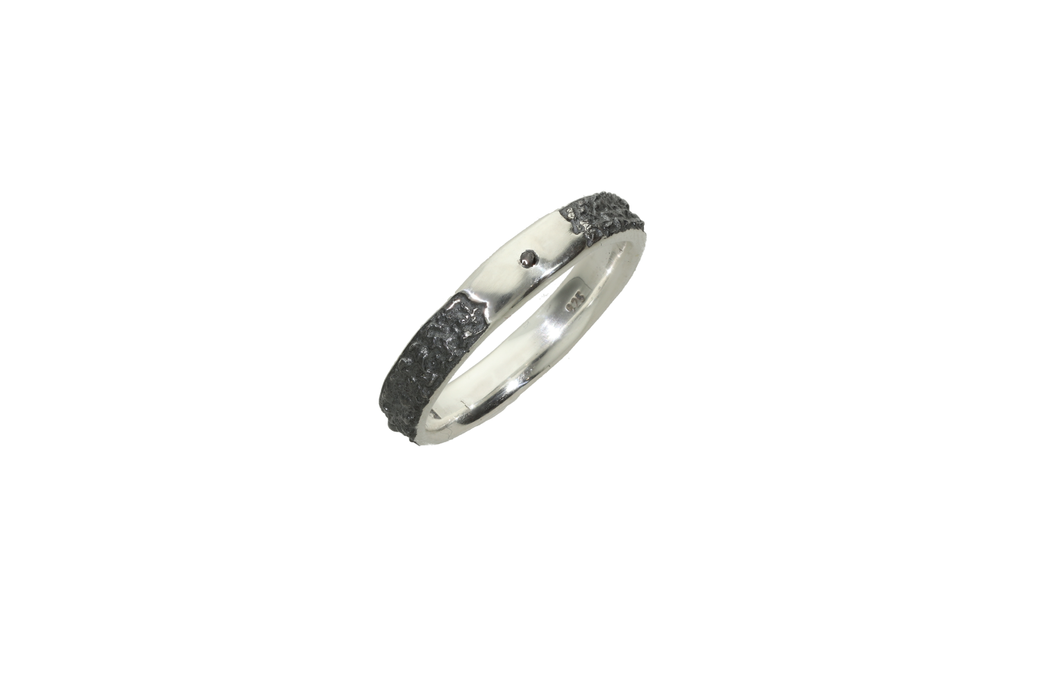 Δαχτυλίδι σε ασήμι 925° με μαυρισμένο ζαγρέ ασήμι και ένα μαύρο διαμάντι