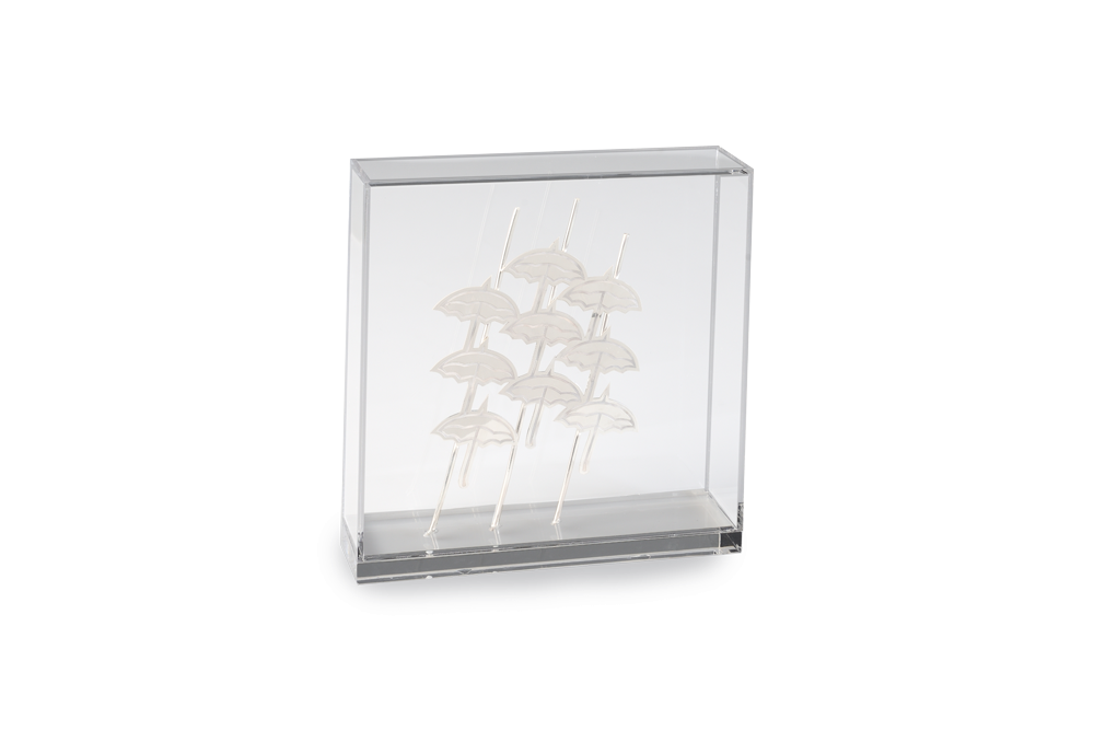 Διακοσμητικό σε ασήμι Ομπρέλες Θεσσαλονίκης μέσα σε κουτί από πλέξι γκλας