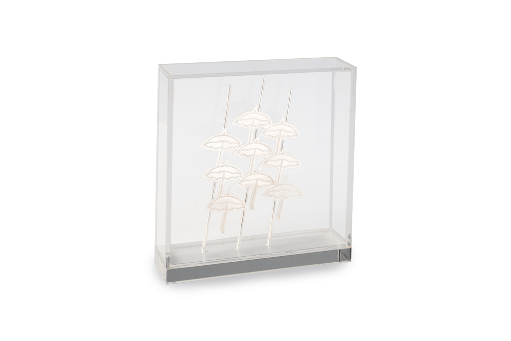 Διακοσμητικό σε ασήμι Ομπρέλες Θεσσαλονίκης μέσα σε κουτί από πλέξι γκλας