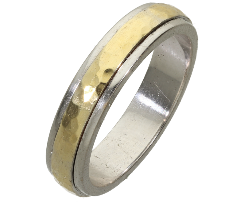 Wedding ring in two-tone 14K yellow and white gold, Square luster with hammered pomeau in the center