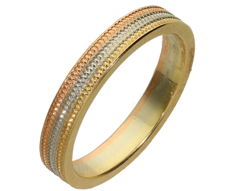 Two-tone Wedding Rings 14K, squared plate wedding ring with triple band