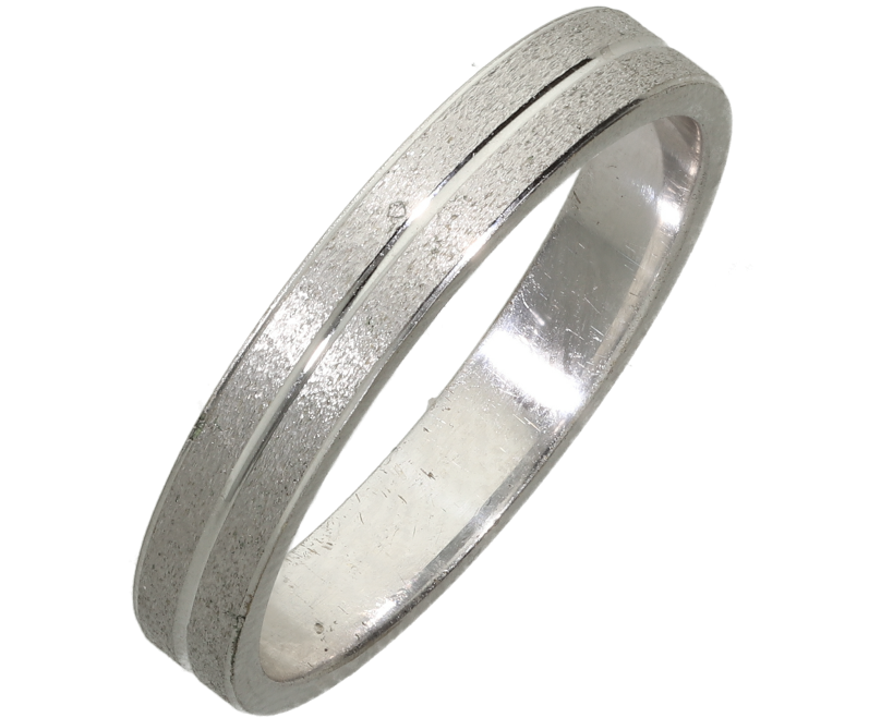 14K White Gold Wedding Rings, Single Wedding Ring in 14K White Gold Matt with Shiny Line, 4mm