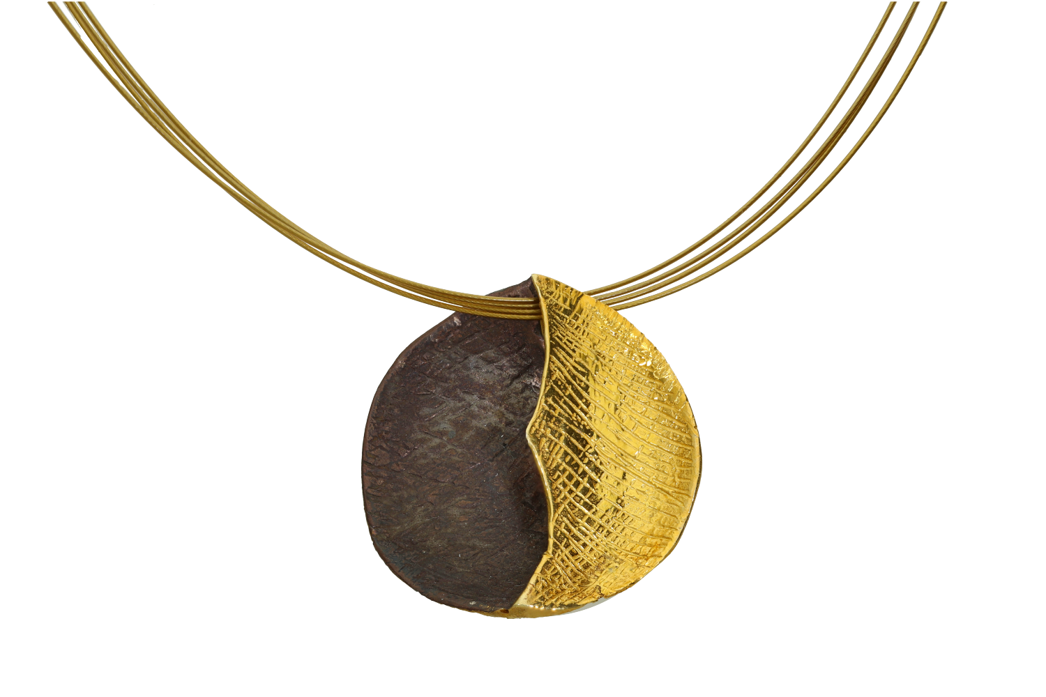Necklace in two-tone silver 925° circular motif with wrinkled surface