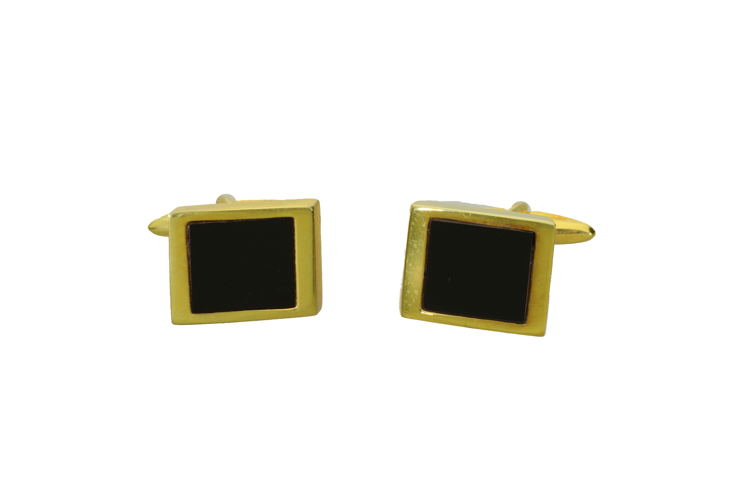 Cufflinks in 925° gold-plated silver rectangular shiny with eccentric onyx