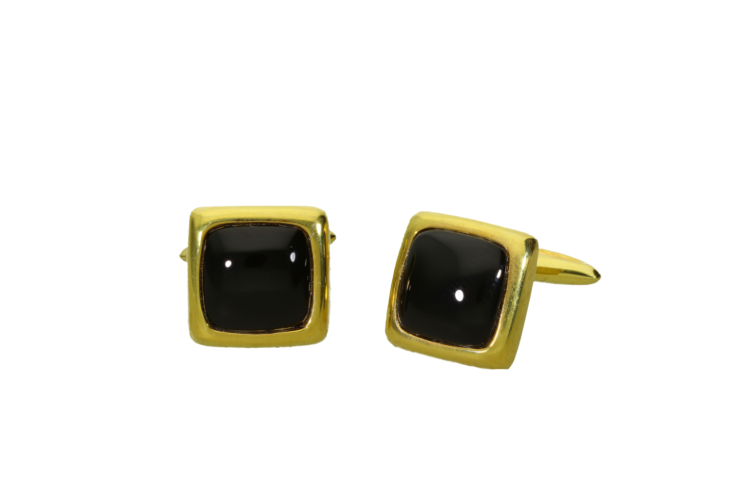 Cufflinks in 925° gold-plated silver Square shiny pompoms with onyx in the center
