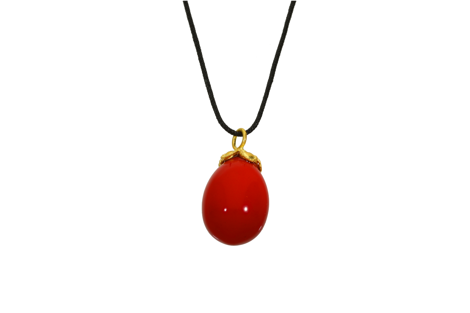 Egg pendant made of red stone with "rose" binding made of silver 925° gold-plated