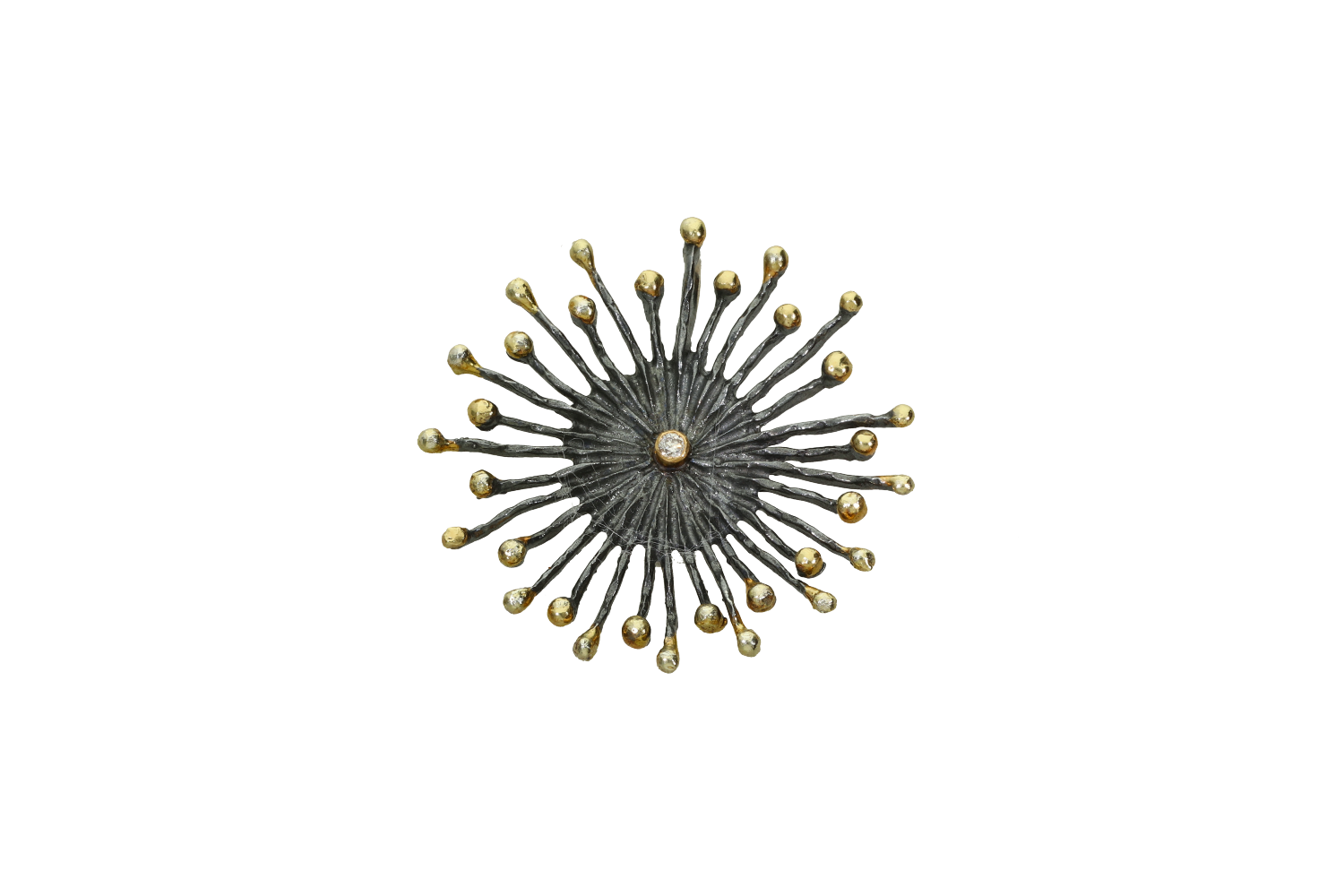 Pendant in silver and 18K gold like a Sun with a diamond in the center