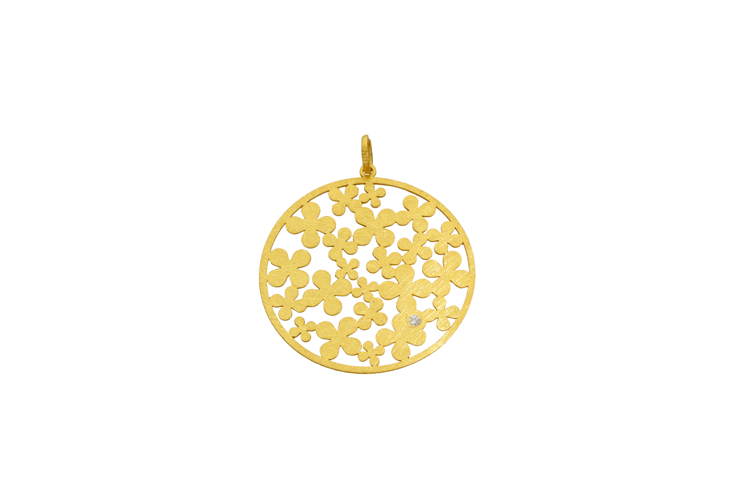 Pendant in 18K gold circle with crosses and diamond