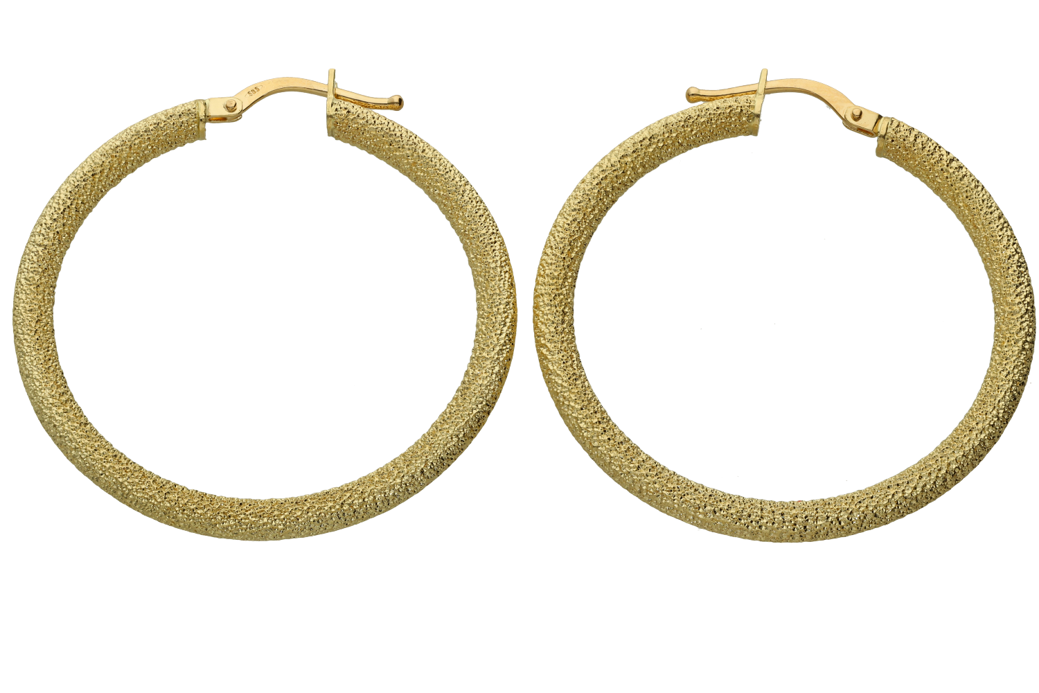 Σκουλαρίκια κρίκοι σε xρυσό 14Κ στρόγγυλοι σαν διαμανταρισμένοι φ 25 χιλιοστά και πάχος 3,5 χιλιοστα