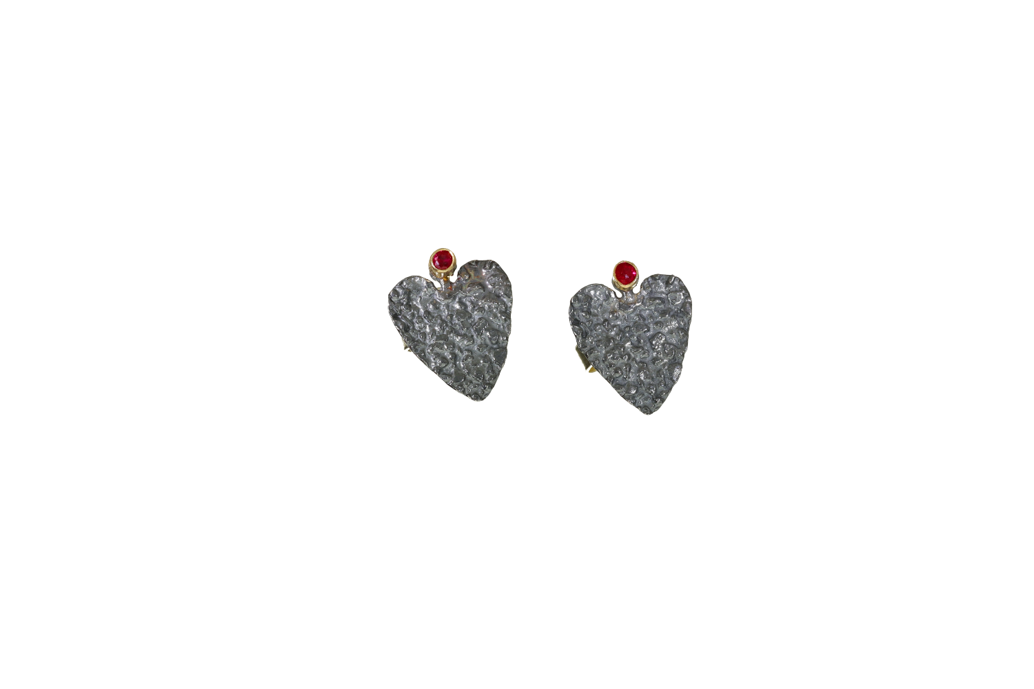 Earrings in silver and 18K gold small zagre hearts with Rubies