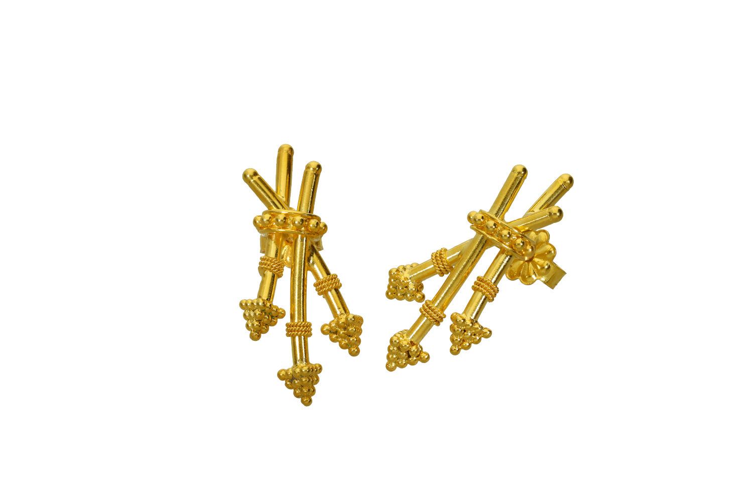 18K gold earrings Thyssanoni from the Macedonian jewelry series, handmade with coccidation