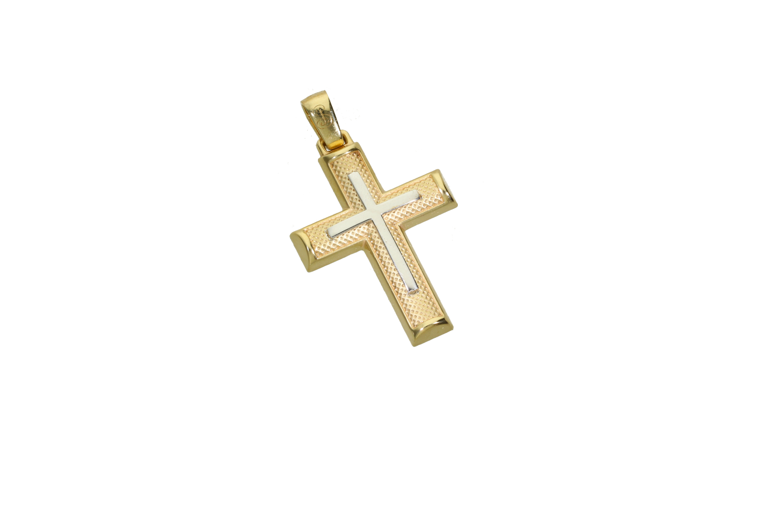 Men's Christening Cross for Boy in 14K gold tubular with white gold cross inside