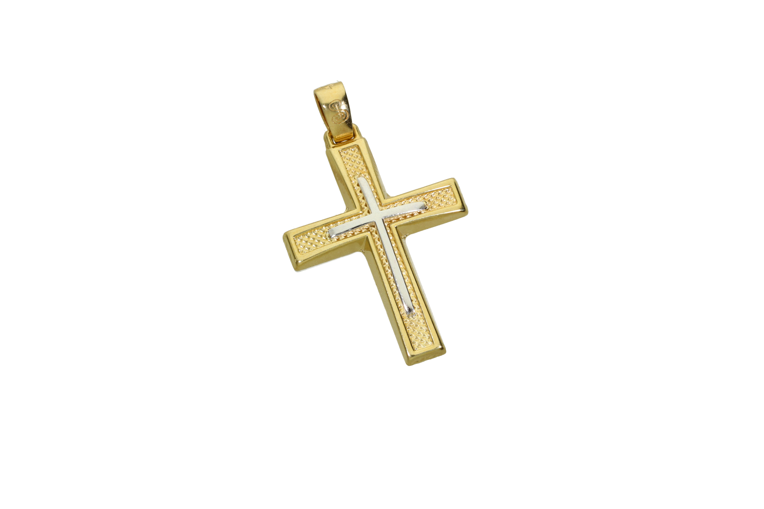 Boy's Baptismal Cross in two-tone 9K gold with honeycomb effect and a smaller white one on top
