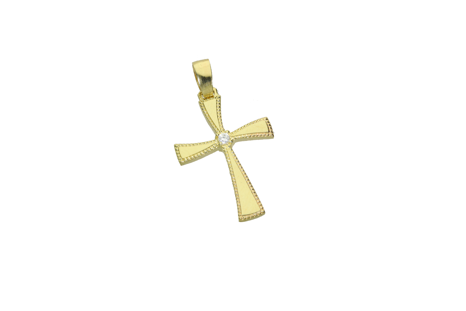 Baptism cross for girl in 9K gold elliptical with zircon in the center