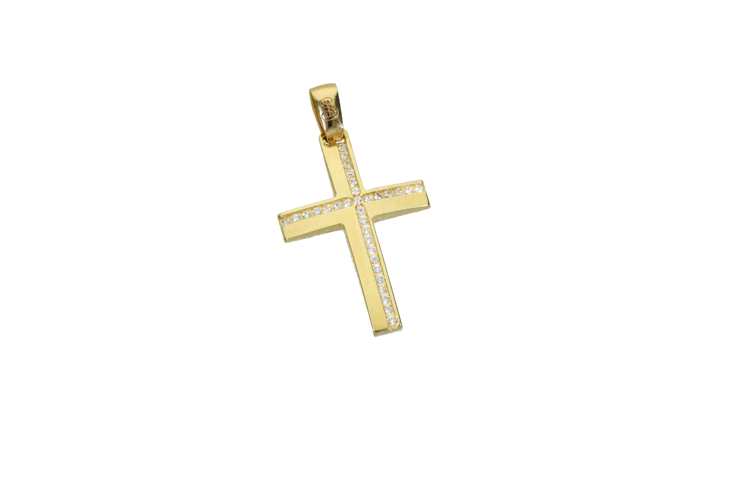 Girl's Christening Cross in 14K Gold with Paracenter Zirconia Cross