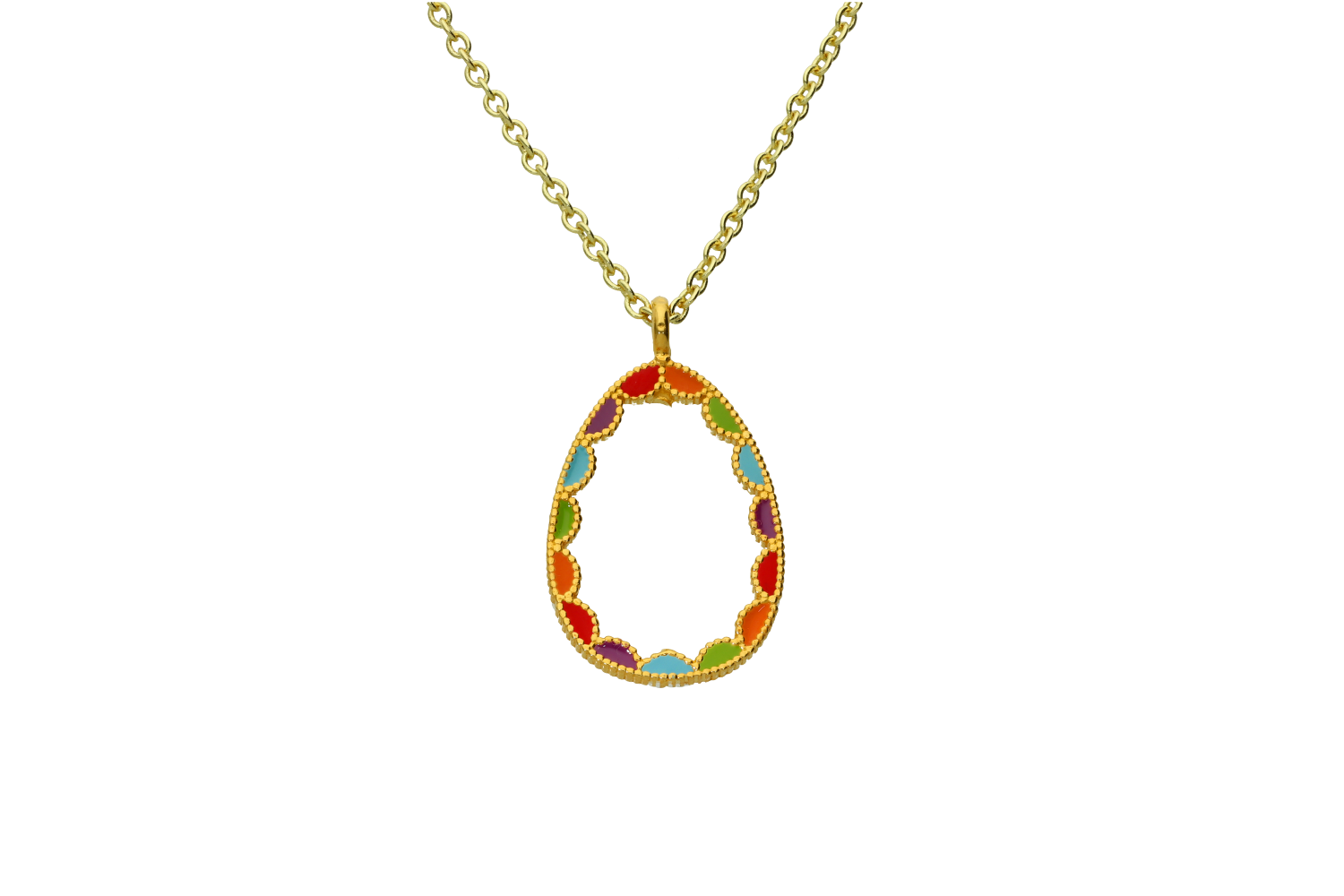 Κολιέ αυγό από ορείχαλκο με πολύχρωμο σμάλτο και αλυσίδα