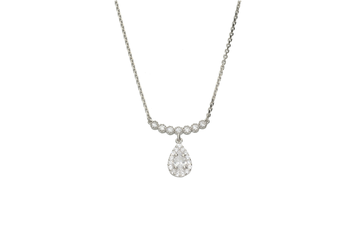 Κολιέ σε ασήμι 925° με μία σειρά από ζιργκόν και μία ροζέτα σαν σταγόνα