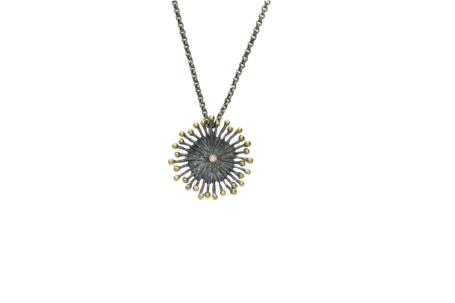 Κολιέ σε ασήμι και χρυσό 18Κ κύκλος με ακτίνες και διαμάντι