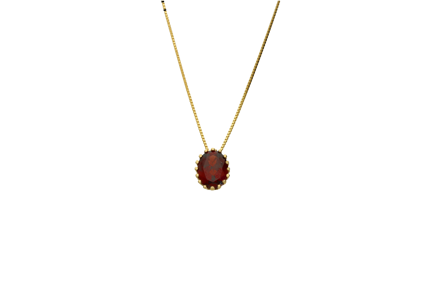 Κολιέ σε χρυσό 18Κ οβάλ καστόνι με πολλά δοντάκια με γρανάδα και αλυσίδα βενετσιάνα.