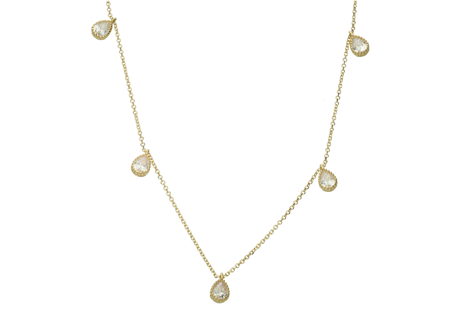 Κολιέ σε χρυσό 9Κ με καρδούλα και ζιργκόν 9Κ με πέντε σταγόνες από ζιργκόν
