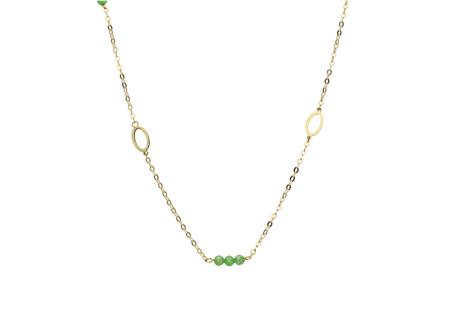 Κολιέ σε χρυσό 9Κ με οβάλ στοιχεία και πράσινες πετρούλες
