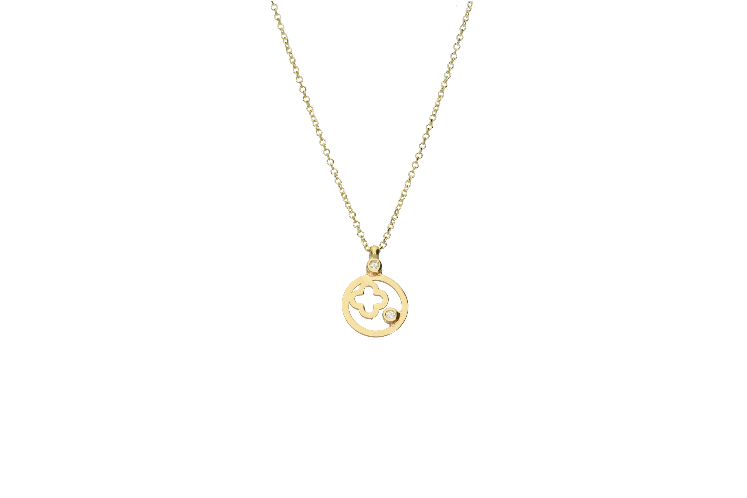 Κολιέ σε χρυσό 9Κ με σταυρουδάκι και ζιργκόν μέσα σε κυκλικό πλαίσιο
