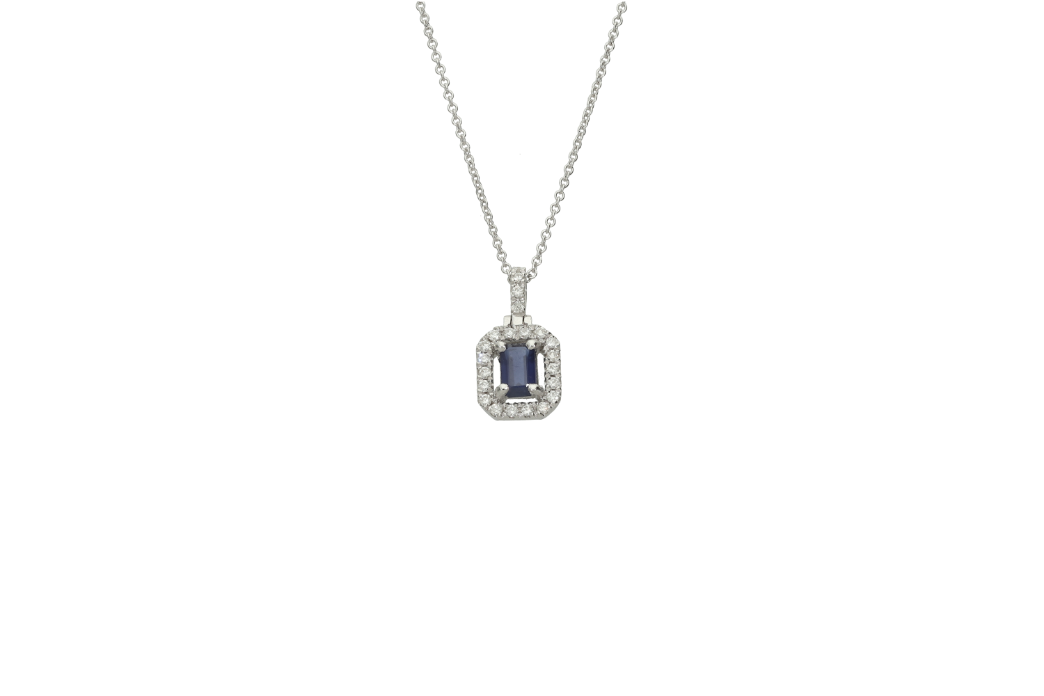 Κολιέ σε λευκόχρυσο 18Κ τετράγωνη ροζέτα με ζαφείρι και διαμάντια