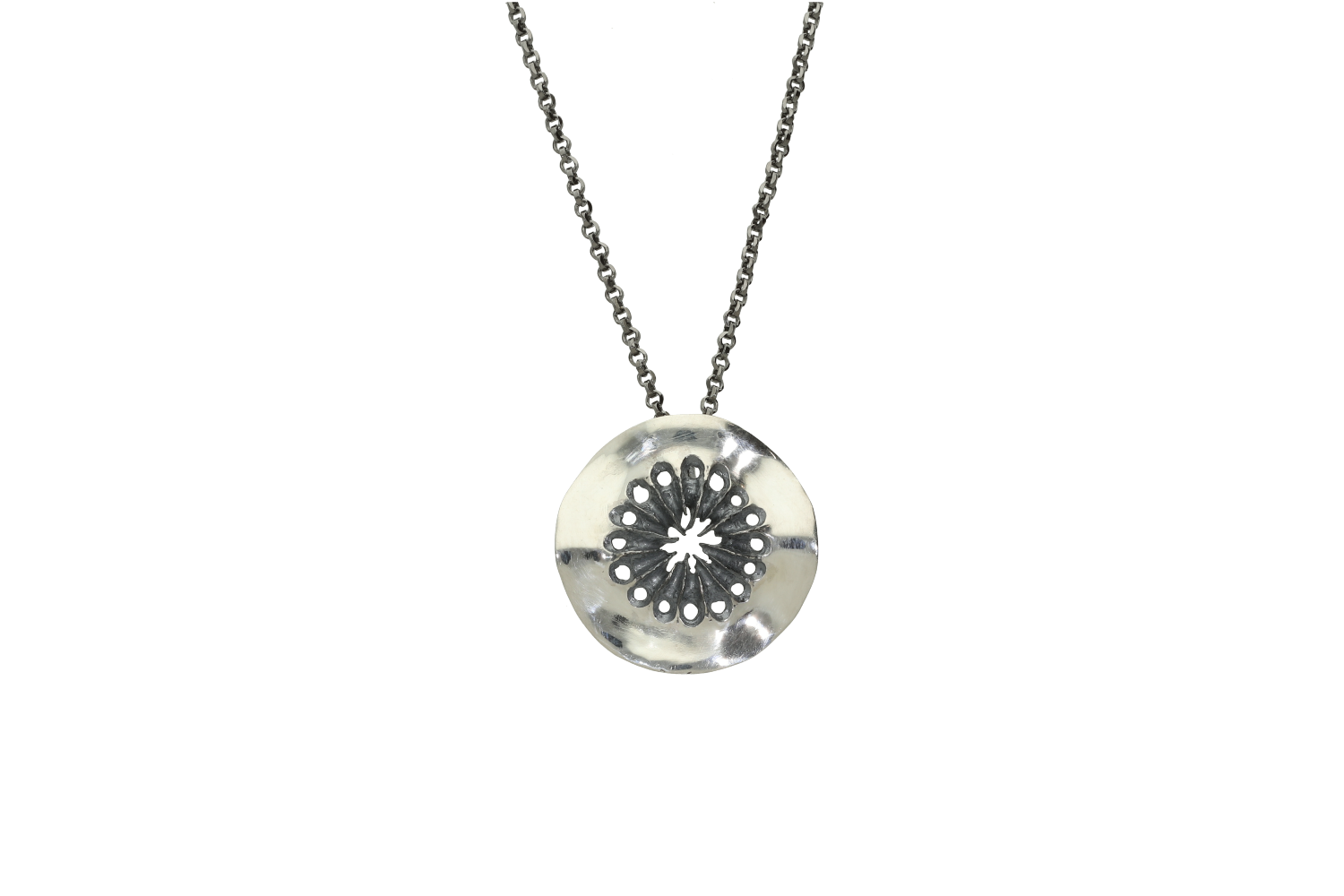 Κολιέ σε μαυρισμένο ασήμι 925° με ένα στρόγγυλο μοτιφ με οριζόντιες γραμμές