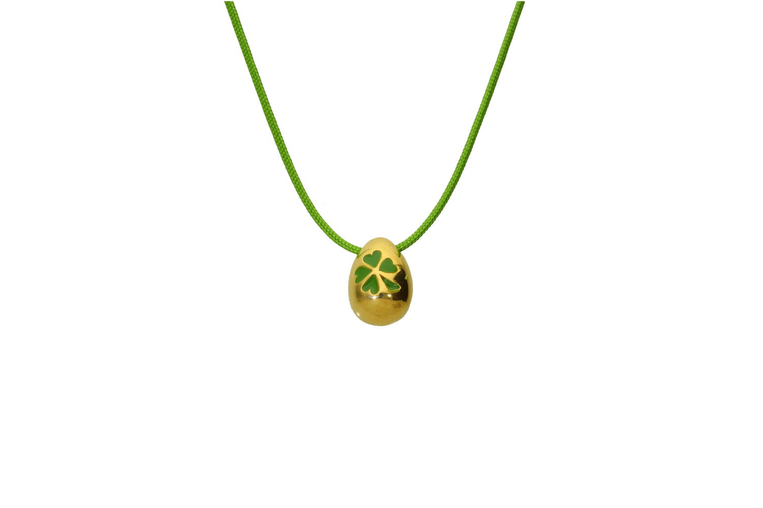 Κολιέ σε μπρούντζο Αυγό Πασχαλινό, μίνι, λουστρέ με τετράφυλλο από πραάσινο σμάλτο και κορδόνι