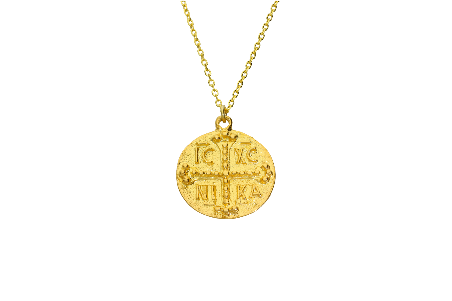 Κωνσταντινάτο σε επιχρυσωμένο ασήμι 925° Αγ.Κωνσταντίνος και αγ. Ελένη απο την μία πλευρα και ΙΝΚΑ από την άλλη