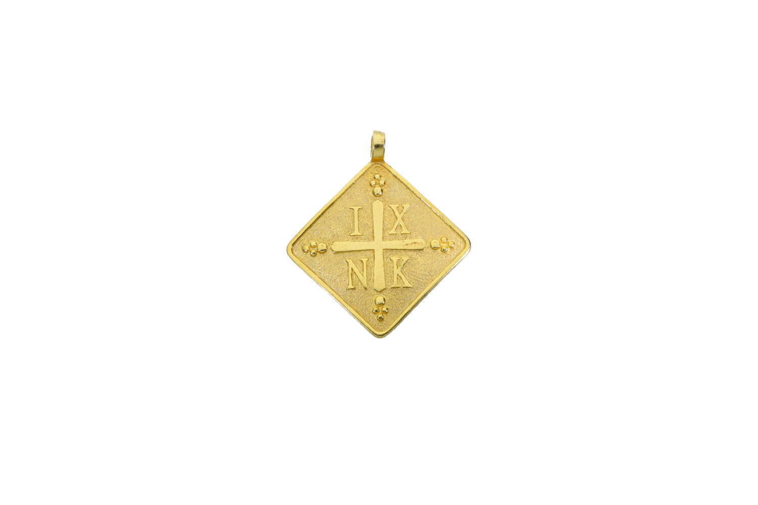 Κωνσταντινάτο σε χρυσό 9Κ τετράγωνο με ICNIKA και Αγ.Κων\νο και Αγ. Ελένη