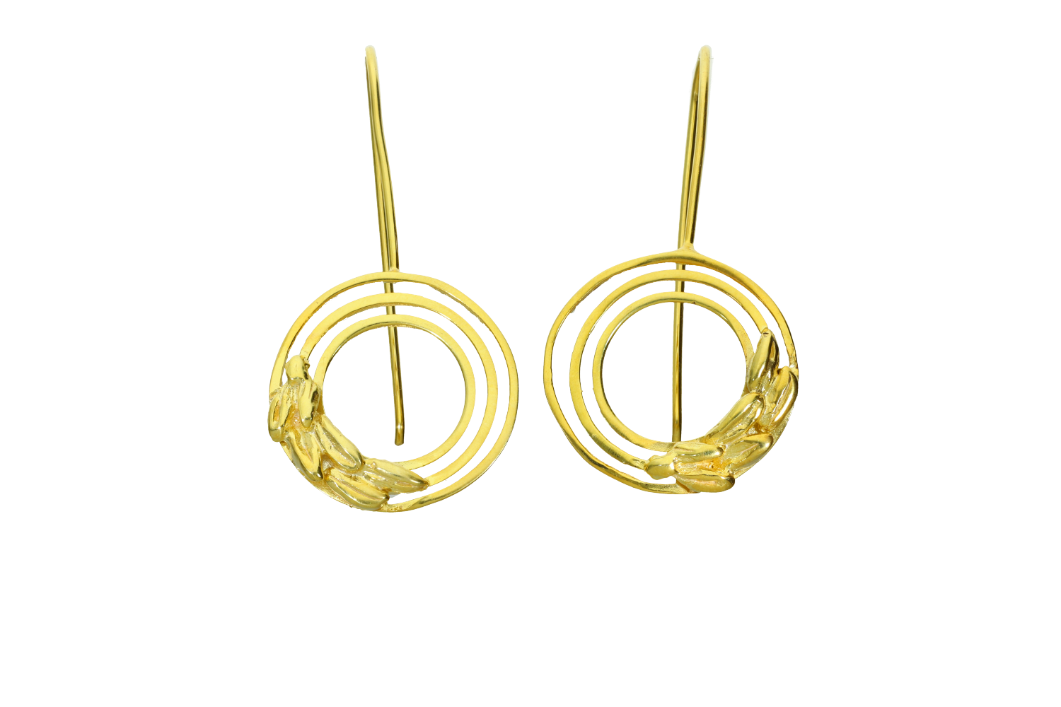 Σκουλαρίκια σε ασήμι 925° Γούρι 2026 "Σιτώ" ομόκεντροι κύκλοι με στάχυ , κρεμαστά επίχρυσα