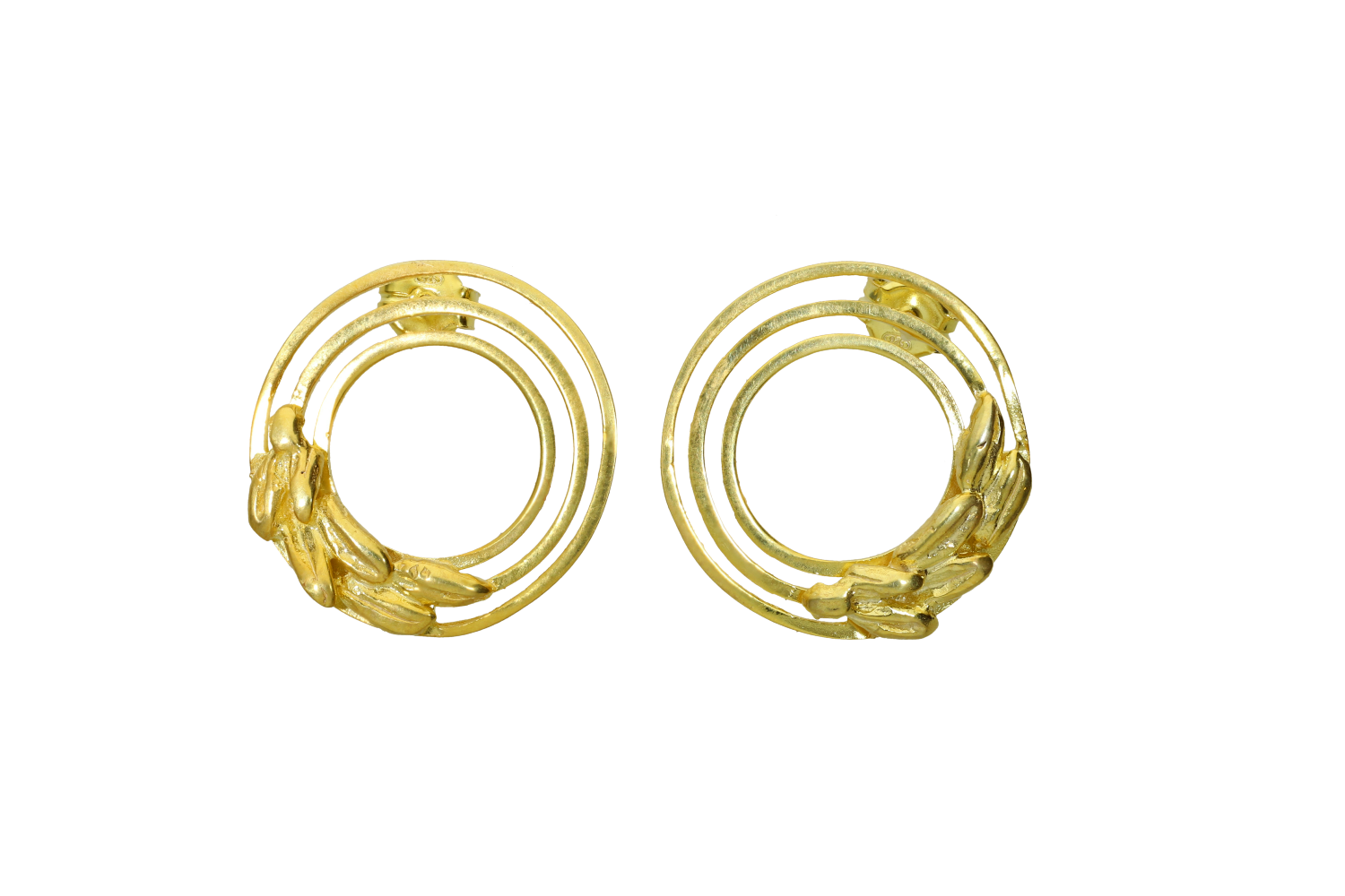 Σκουλαρίκια σε ασήμι 925° Γούρι 2026 "Σιτώ" ομόκεντροι κύκλοι με στάχυ, επιχρυσωμένα