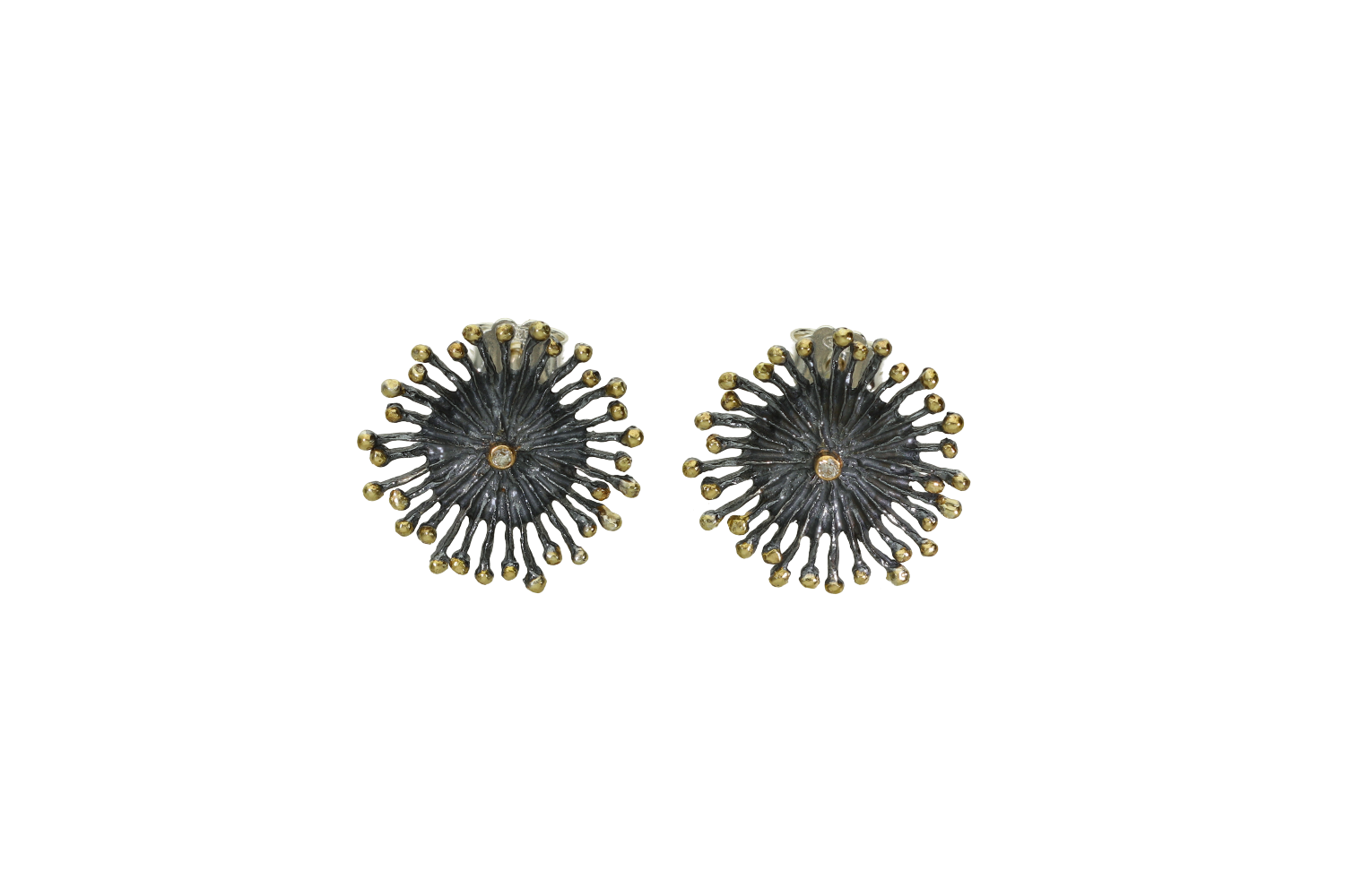 Σκουλαρίκια σε μαυρισμένο ασήμι και χρυσό κ18 ακτινωτά με διαμάντι