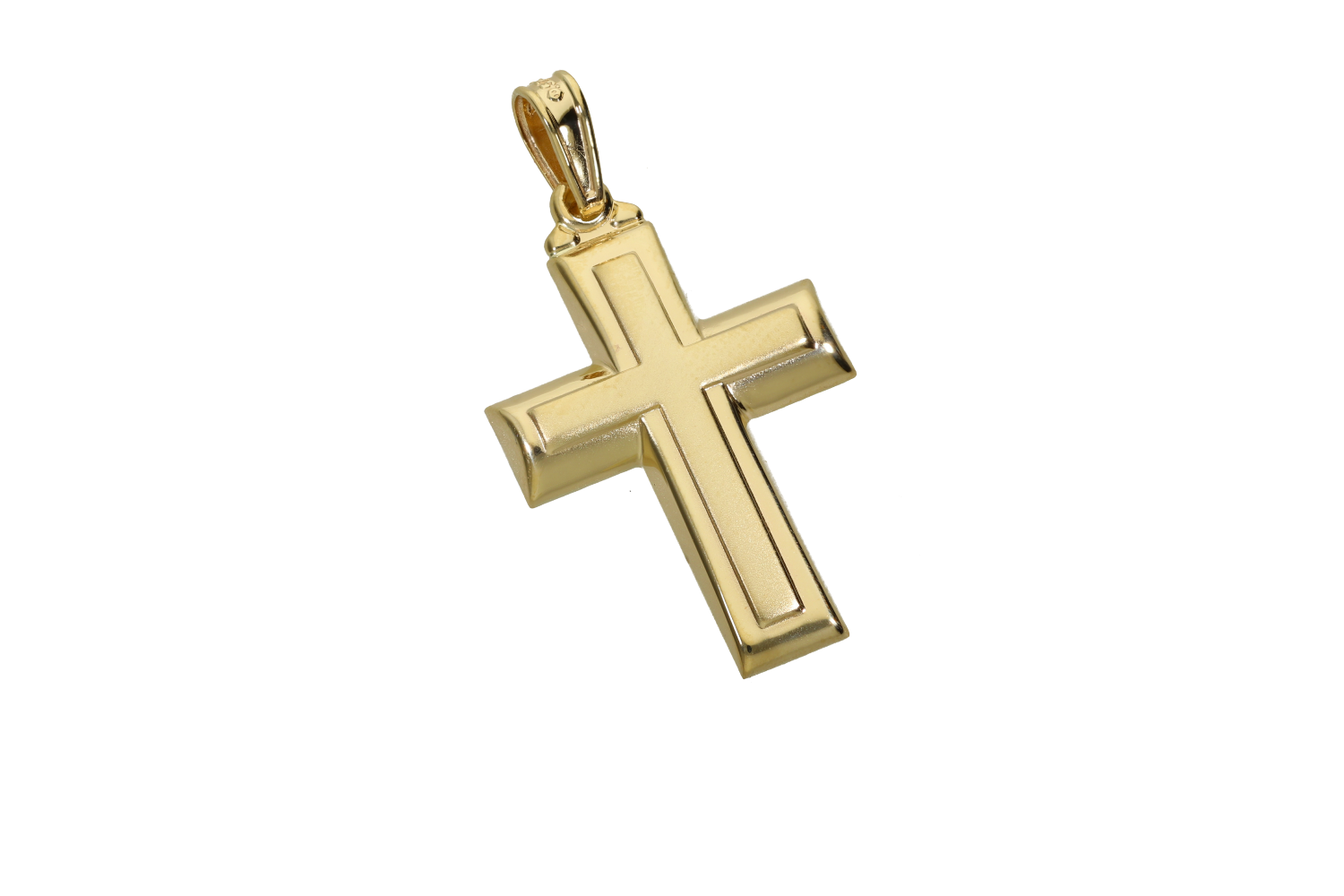 Σταυρός Βάπτισης για αγόρι σε χρυσό 9Κ πομπέ γυαλιστερός με ένθετο ματ στο κέντρο.