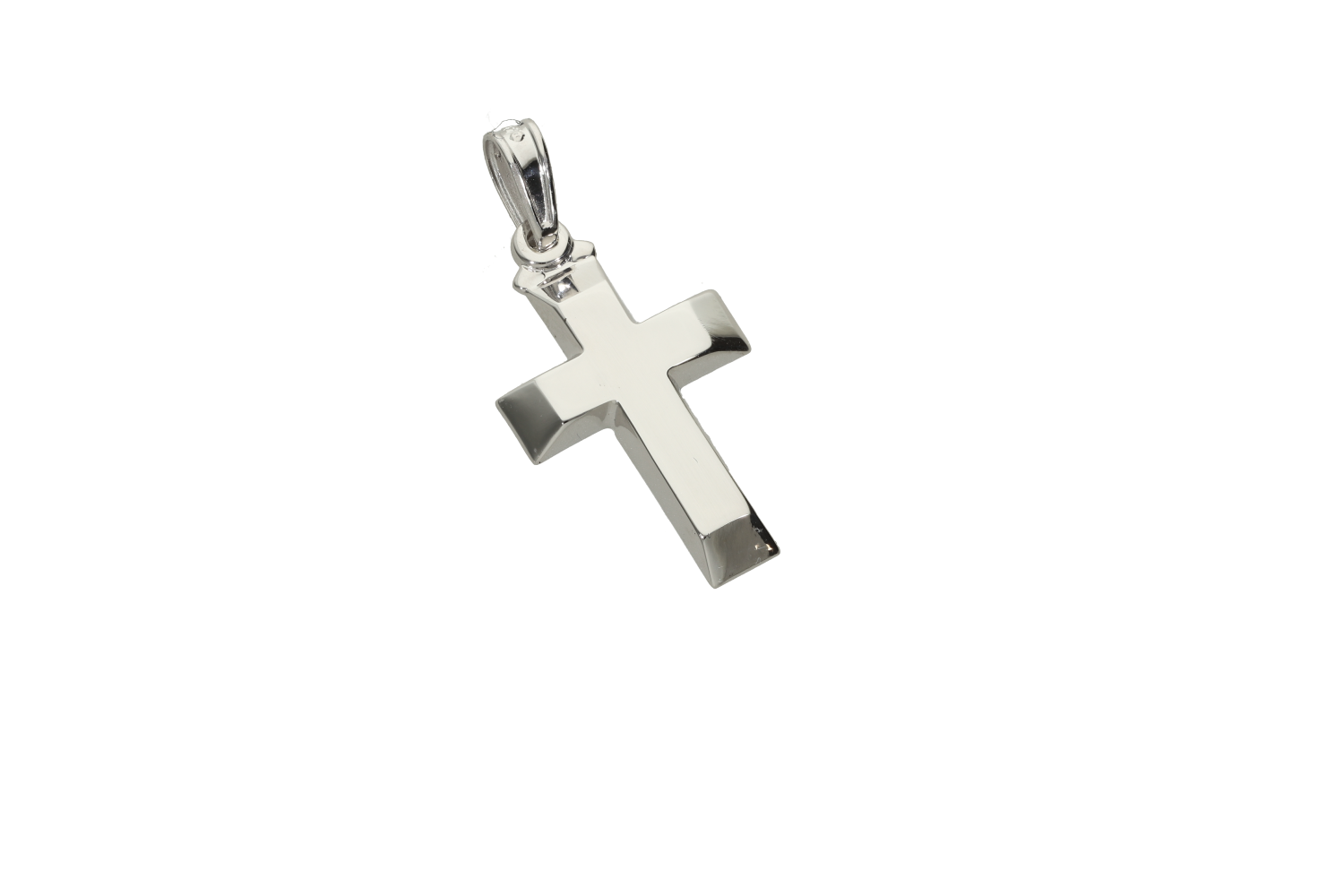 Σταυρός Βάπτισης για αγόρι σε λευκόχρυσο 9Κ γυαλιστερός με διαγωνάλ άκρες