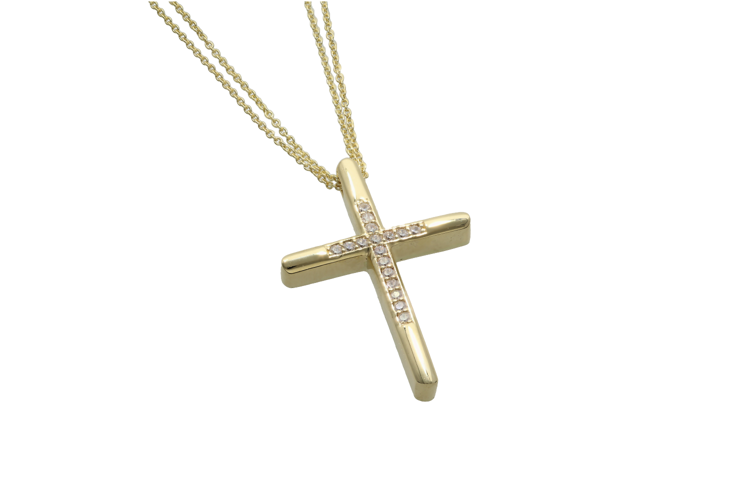 Σταυρός Βάπτισης σε χρυσό 9Κ η μία πλευρά είναι γυαλιστερή με τα ζιργκόν να σχηματίζουν έναν μιρκότερο σταρυρό και η άλλη γυαλιστερή