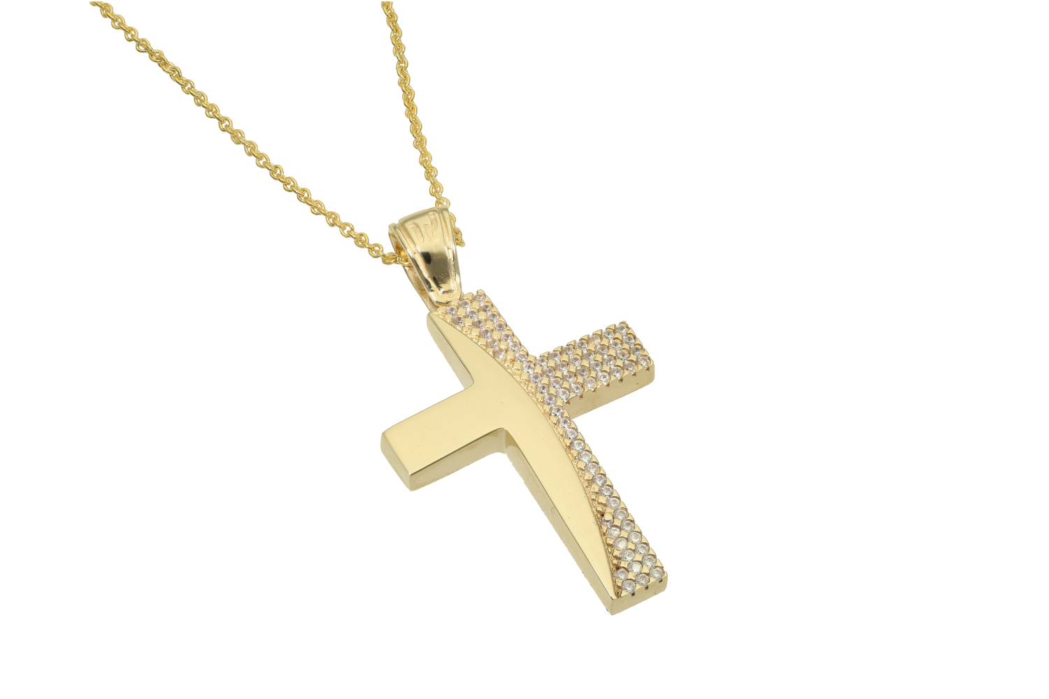 Σταυρός Βάπτισης σε χρυσό 9Κ η μία πλευρά είναι μισή γυαλιστερή μισή με ζιργκόν και η άλλη πλευρά είναι γυαλιστερή (χωρίς αλυσίδα)