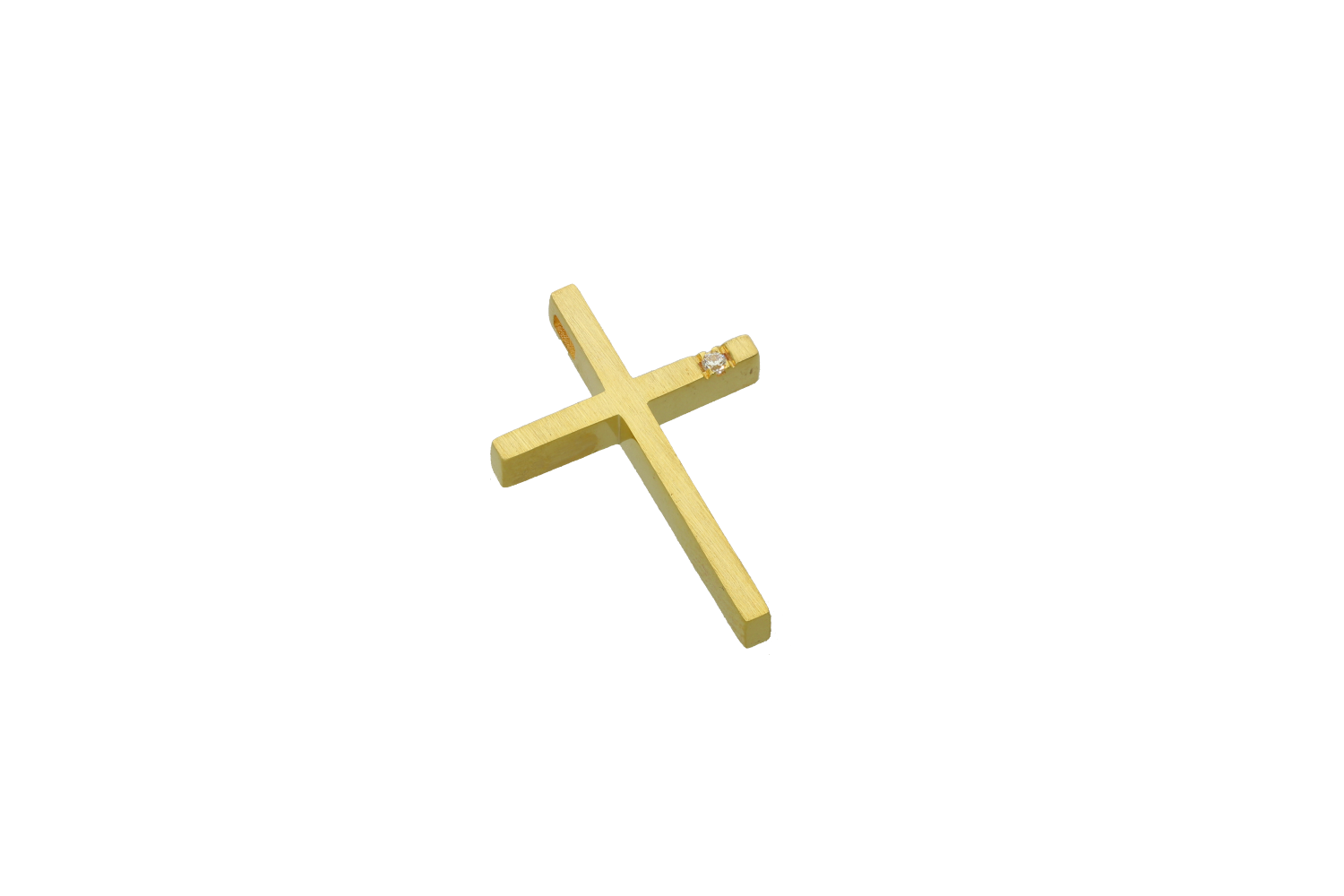 Σταυρός Βάπτισης σε χρυσό 9Κ κλασικός λεπτός σατινέ με έκκεντρο ζιργκόν