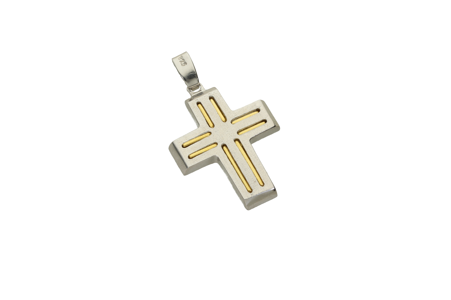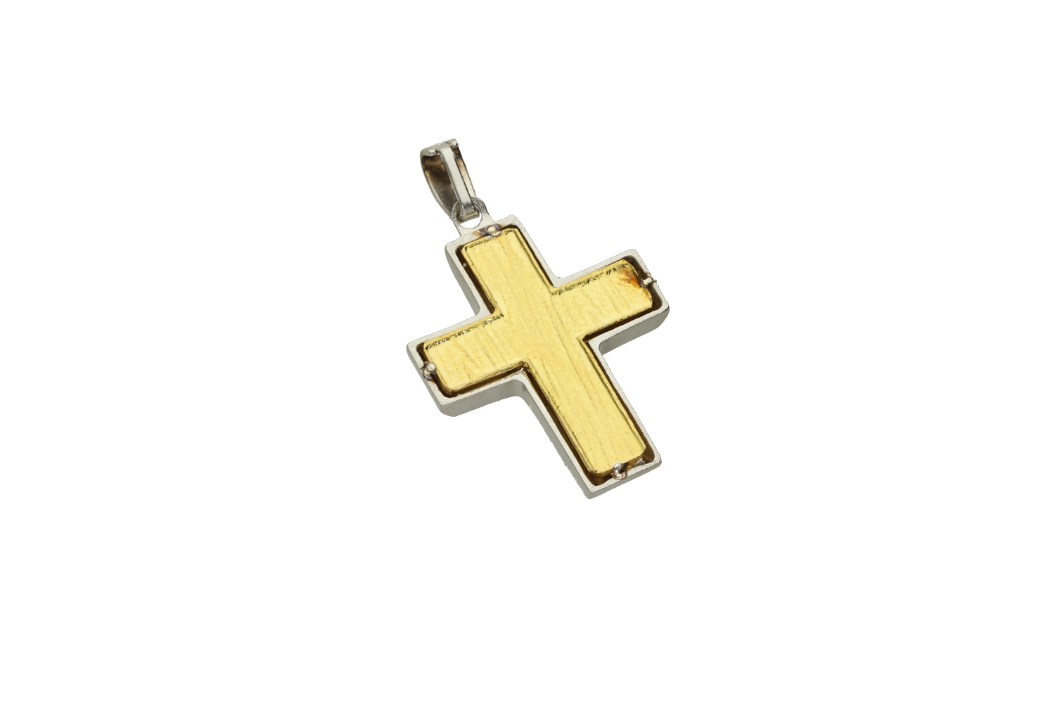 Σταυρός δύο όψεων σε ασήμι 925° ζαγρέ από τη μία πλευρα με επίχρυσα γυαλιστερά στοιχεία από την άλλη
