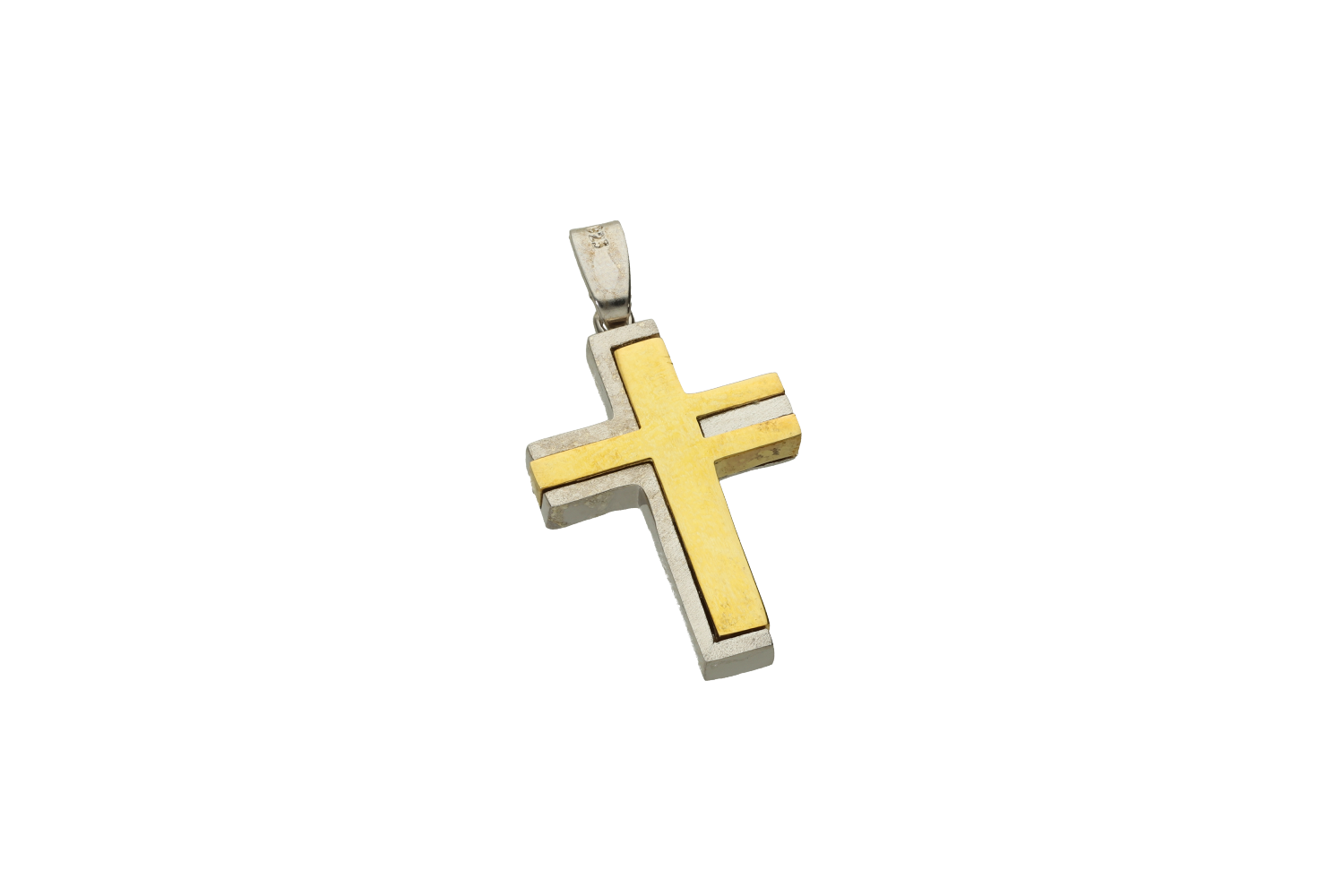 Σταυρός δύο όψεων σε δίχρωμο ασήμι 925° ματ από τη μία πλευρα με επίχρυσο στοιχείο από την άλλη